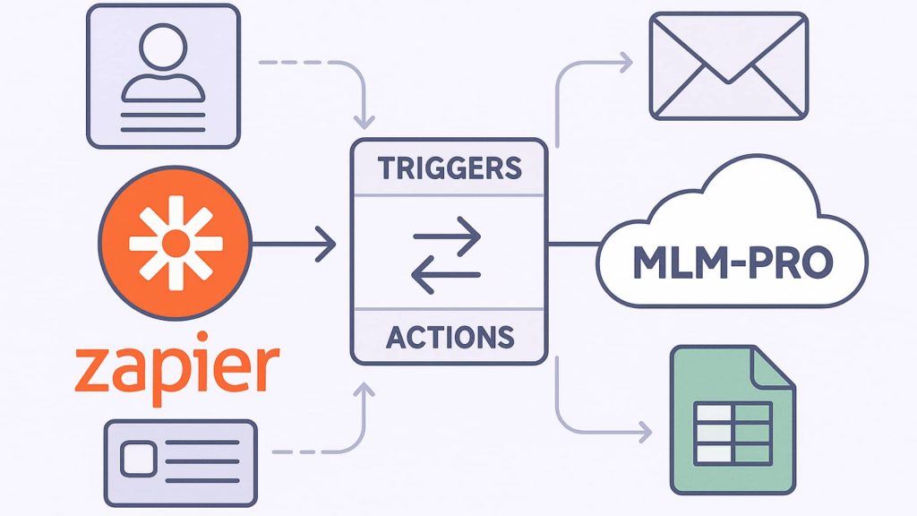 Zapier позволяет связать MLM-PRO с тысячами популярных платформ — от интернет-магазинов и CRM до e-mail-маркетинга и чат-инструментов (подробнее о связке каналов — в новости про омниканальные продажи). Подключение выполняют маркетологи или менеджеры без участия разработчиков: в Zapier доступно публичное приложение, которое работает с типовыми событиями системы и двусторонними вебхуками.